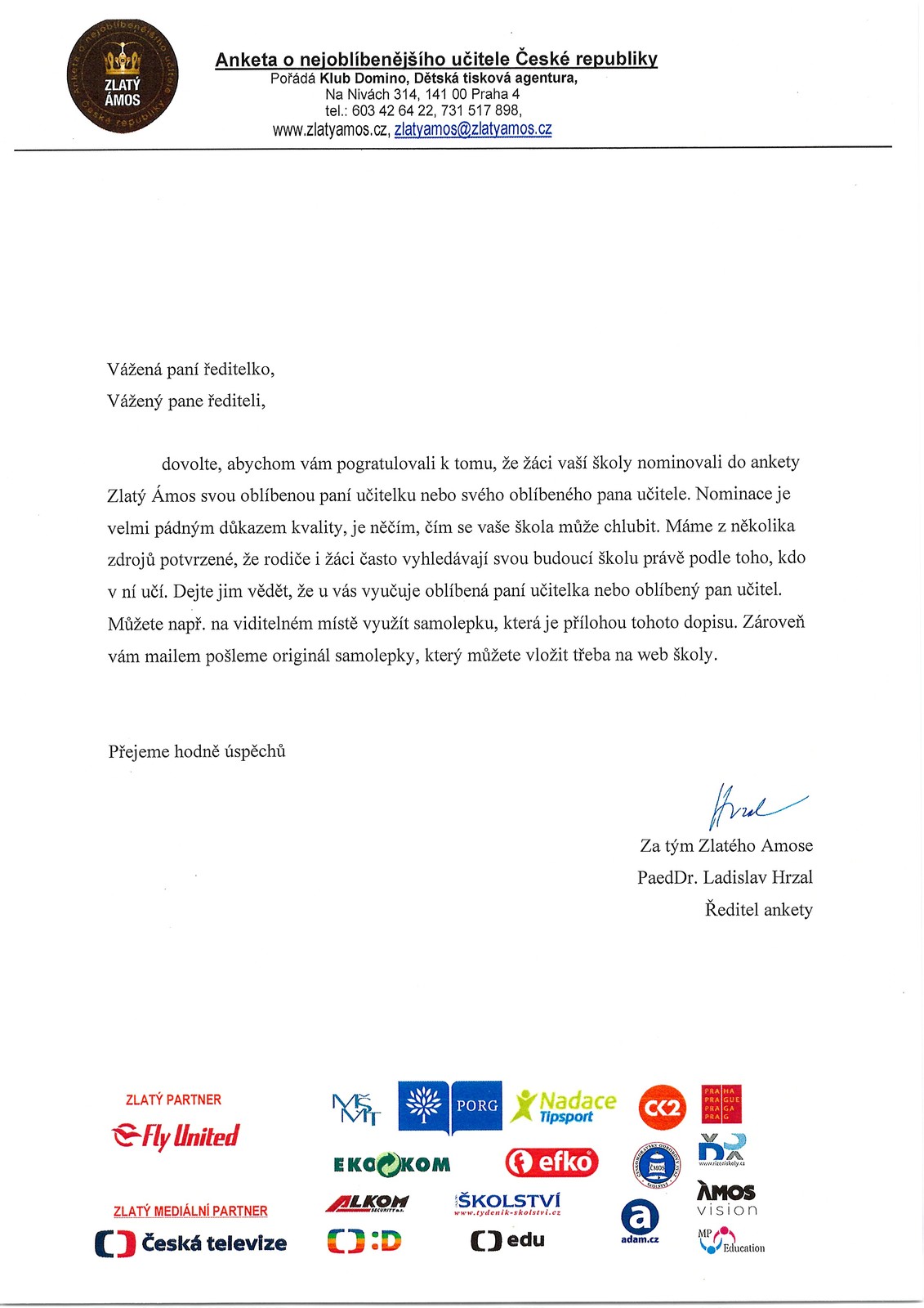 Zlatý Ámos - info pro školu