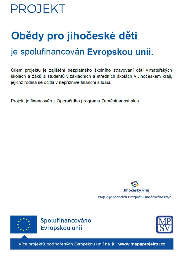 Škola je zapojena do projektu "Obědy pro jihočeké děti".